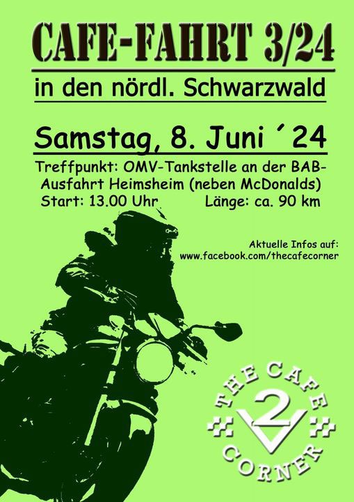 Cafe-Fahrt 1/2519. AprilRennweste SaisoneröffnungRohrdorf / Blackforest26. AprilVETERAMAHockenheim 25. - 27. AprilMC Huttenheim - SAVE THE ZHOPPERS!Custom & Classic Fest29. Mai am Vatertag