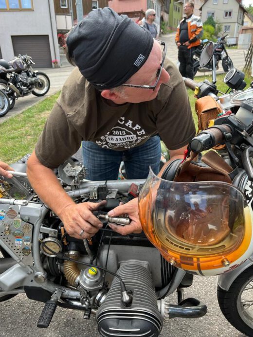 Am gestrigen Sonntag gings zum Jubiläum vom Corner. Leider hatte Tom ausgerechnet an diesem Tag Pech und blieb liegen. Dr. Pepe zerlegte fast das ganze Motorrad mit seinem Leatherman und der Fehler wurde gefunden....