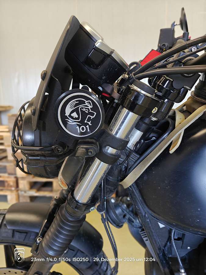 Vorher hatte ich ich eine Maske von Biondi installiert und von Hepco-Becker das Lampengitter, was mir eigentlich super gefällt, aber mit der Corsa Maske hat dies leider keinen Platz mehr.