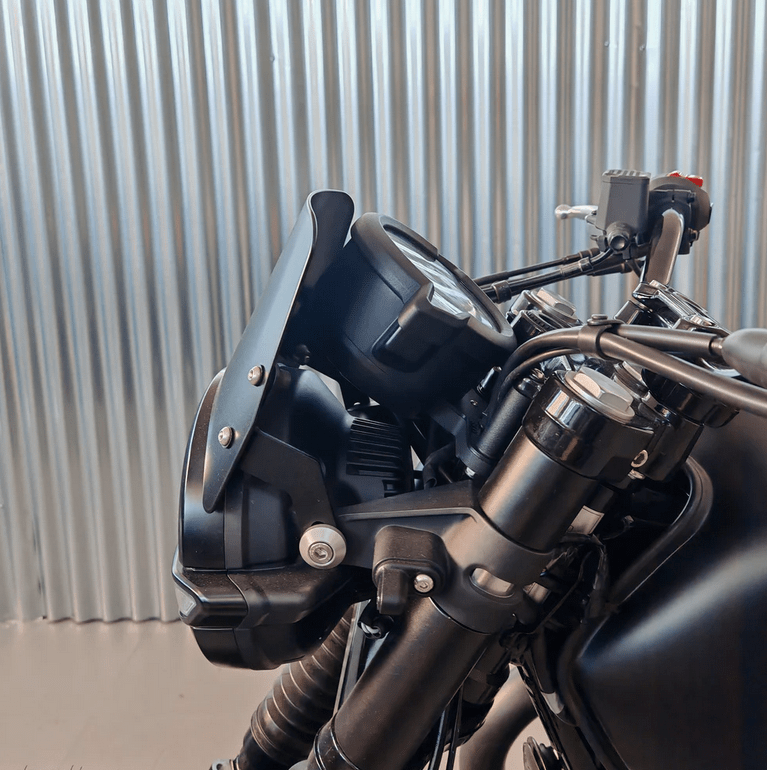 Ich überlege gerade an der Stone eine Frontmaske im Look eines Cafe Racer zu machen. Die Maske passt für die Edition CORSA, aber wohl auch für die Stone. Kläre es gerade ab, würde mir gut gefallen. Die jetzigen PIRELLI Reifen mit Stollen sehen anders aus. Aber eventuell reizvoller Gegensatz.Rechts im Bild hab ich die Verleidung schon mal bildlich montiert.